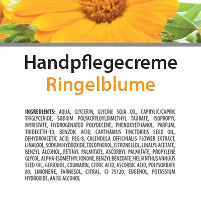 Aqua, Glycerin, Glycine Soja Oil, Caprylic/Capric Triglyceride, Sodium Polyacryloyldimethyl Taurate, Isopropyl Myristate, Hydrogenated Polydecene, Phenoxyethanol, Parfum, Trideceth-10, Benzoic Acid, Carthamus Tinctorius Seed Oil, Dehydroacetic Acid, PEG-8, Calendula Officinalis Flower Extract, Linalool, Sodium Hydroxide, Tocopherol, Citronellol, Linalyl Acetate, Benzyl Alcohol, Retinyl Palmitate, Ascorbyl Palmitate, Propylene Glycol, Alpha-Isomethyl Ionone, Benzyl Benzoate, Helianthus Annuus Seed Oil, Geraniol, Coumarin, Citric Acid, Ascorbic Acid, Polysorbate 80, Limonene, Farnesol, Citral, CI 75120, Eugenol, Potassium Hydroxide, Anise Alcohol.